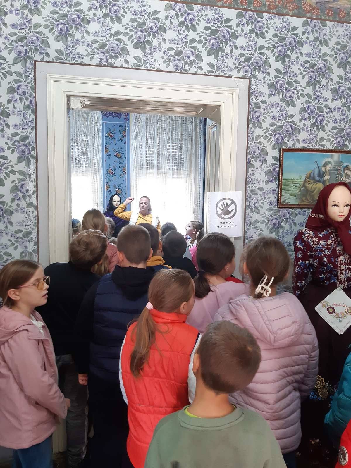 Žiaci nižších ročníkov navštívili Masárikov dvor, kde sa dozvedeli veľa o živote ľudí v minulosti. Videli starý nábytok, tradičný odev a rôzne nástroje, ktoré sa používali v každodennom živote. Porozprávali im o zvykoch, tradíciách a spôsoboch života našich predkov. Bola to veľmi zaujímavá a poučná návšteva. Ďakujeme rodine Svákovej za krásne uhostenie.